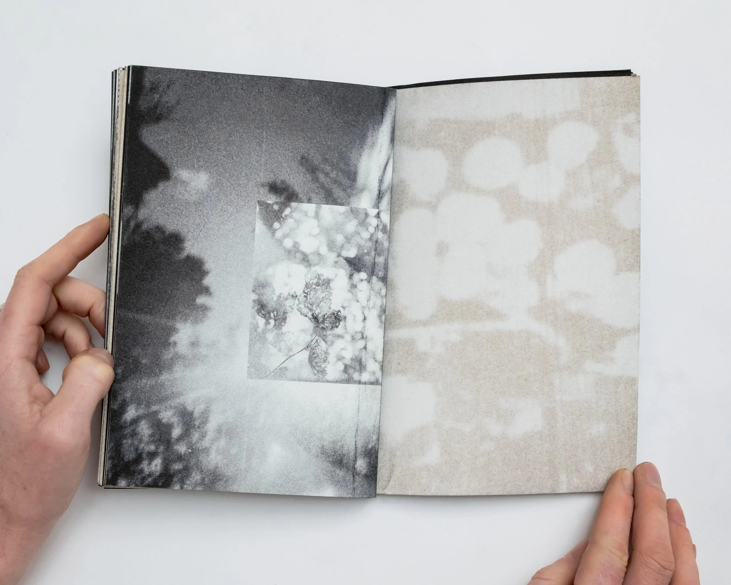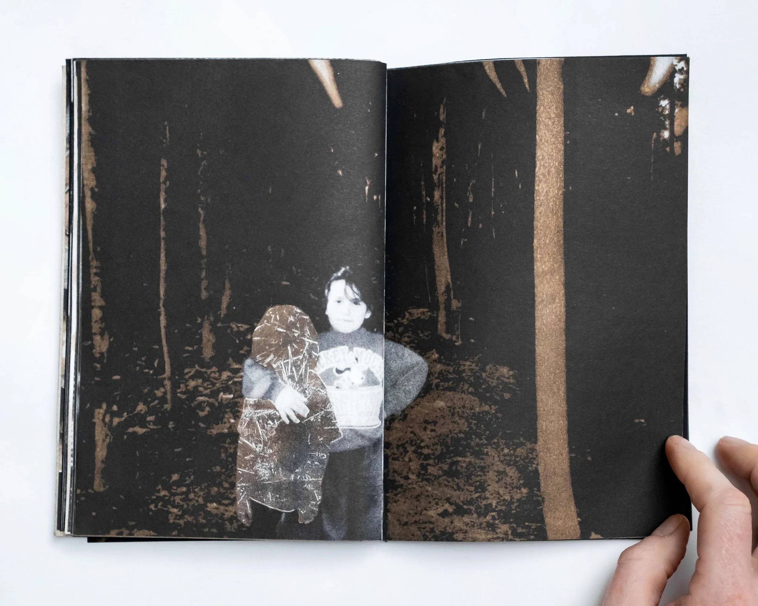 Despite having lived observing the depredation of these territories, my father asked that his ashes be scattered in the shade of an alerce tree, in the middle of the native forest. As of this paradox, I wonder about the contours between human beings and nature and the limit between the natural and artificial. Even considering that it was my first time using a riso machine, I was really drawn to it as an artistic resource, so it was a great opportunity to experiment and bring out what I already had in mind. Since my project is based on analog photography, intervention and use of archives, it was interesting to add a third layer of experimentation to it. For me, there’s also value in the fact that riso is much more ecological than other printing techniques used to produce photobooks.” –Maite Mérida