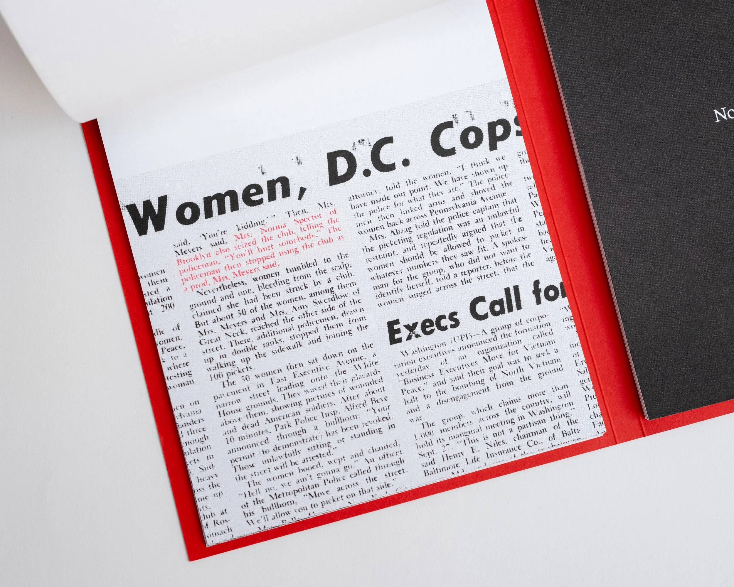 The book aims to illuminate and critique the government’s surveillance of people, its own citizens, advocating for equality and peace by appropriating pages directly from the file and recontextualizing them through the lens of family history. The left-hand pages feature the FBI’s portrait of my grandmother, and the right-hand pages feature images of my grandmother from our family archive. The book was designed to evoke a government file. Each spread is split in half, forcing the reader to use both hands to engage with the book fully.“