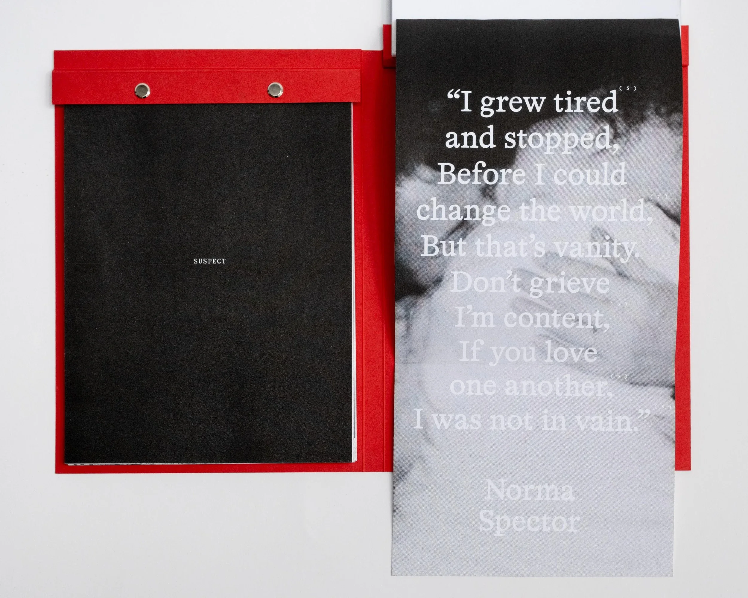 “Security Matter (C) - A Portrait of Surveillance is a photographic book that draws directly from the nearly 400 pages of my grandmother’s FBI file. My grandmother, Norma Spector, was surveilled between 1949 and 1978 for her involvement in the Communist Party, Federation of Greek Maritime Unions, Women Strike for Peace, Brooklyn Committee for a Sane Nuclear Policy, and the National Negro Congress. The “C” in “Security Matter C” stood for “communist.”